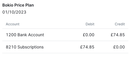 How to record purchasing Bokio price plan
